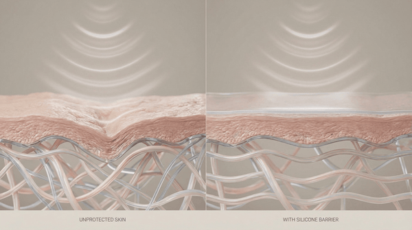 När huden torkar ut reagerar den genom att öka kollagenproduktionen. Vid ärr, rynkor och fina linjer kan detta bidra till att vävnaden blir tjockare, hårdare och mer framträdande. Silikontejpen skapar en kontrollerad fuktbarriär som bevarar hudens naturliga återfuktning utan att störa dess balans. Det ger huden förutsättningarna för att bli mjukare, mer elastisk och visuellt jämnare.